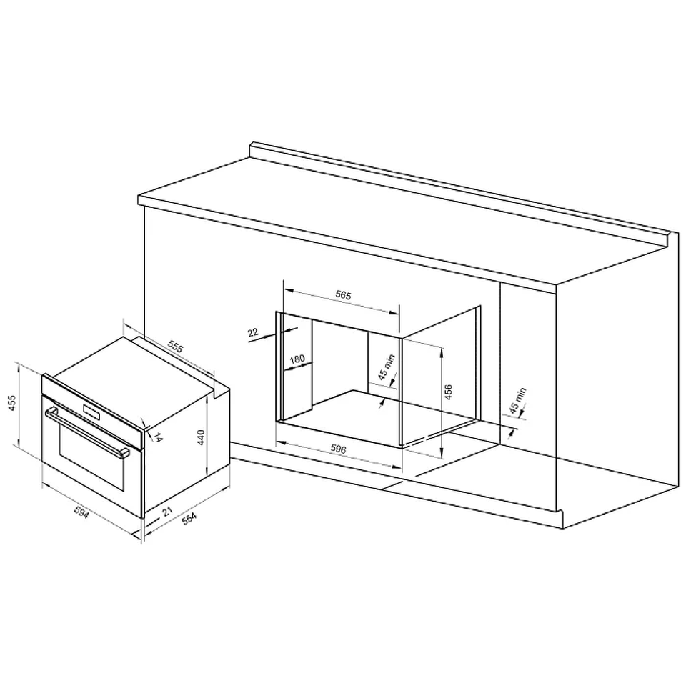 Встраиваемый духовой шкаф ONYX 45H высотой встраивания 45 см и шириной встраивания 60 см выполнена в дизайне total black и оснащен современным управлением Onyx Touch со скрытым пультом управления во время покоя.