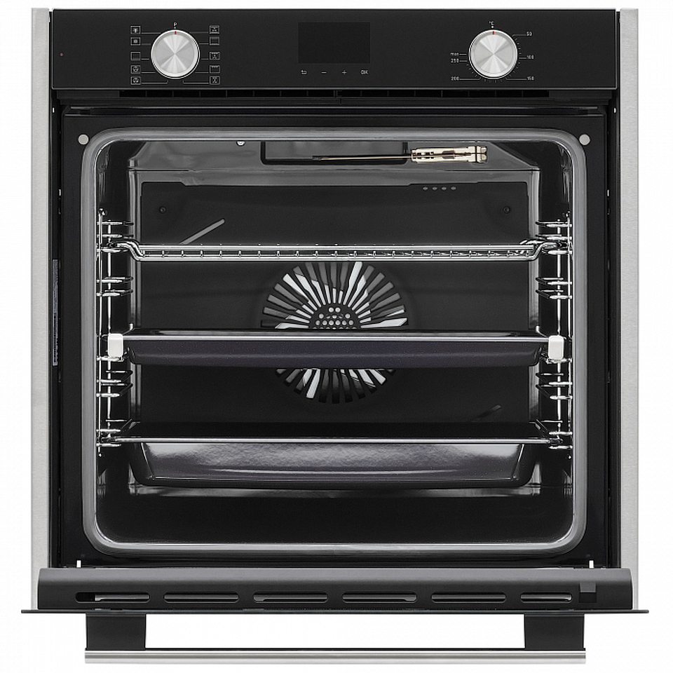 Электрический духовой шкаф QUENDEL 60 выполнен в современном стиле из черного закаленного стекла с интегрированными металлическими боковыми вставками. Модель встраивается в шкаф шириной 60 см и имеет увеличенный объем Extra Large - 81 литр, благодаря которому вы без проблем сможете готовить большое количество порций на нескольких уровнях. Дверца духового шкафа выполнена из закаленного стекла Schott Ceran и имеет усиленную теплоизоляцию LOW-E. QUENDEL 60 оснащен 10 режимами работы, грилем, 3D-конвекцией, функцией разморозки, удобным электронным таймером с функциями напоминания/включения/отключения. Для вашего удобства в духовом шкафу предусмотрены доводчик плавного закрытия дверцы, а также телескопические направляющие на одном уровне, которые обеспечат легкий доступ к блюду во время приготовления. А каталитическая панель на задней стенке обеспечит максимально простой уход за духовым шкафом.