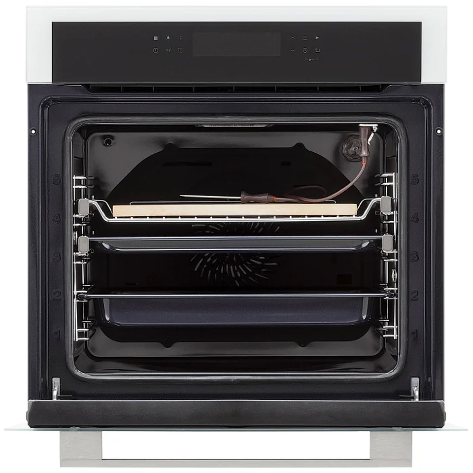 Электрический духовой шкаф UNIVERSUM 60 выполнен в современном дизайне Total Black из черного закаленного стекла с полностью сенсорным управлением Touch Control. Модель встраивается в шкаф шириной 60 см и имеет полезный объем камеры 66 литров, благодаря которому вы без проблем сможете готовить большое количество порций на нескольких уровнях. Дверца духового шкафа выполнена из закаленного стекла и имеет усиленную теплоизоляцию LOW-E. Для вашего удобства на дверце предусмотрены подсказки по приготовлению. UNIVERSUM 60 оснащен 14 режимами работы, грилем, 3D и 4D-конвекцией, функцией разморозки, функцией поддержания тепла, удобным электронным таймером с функциями напоминания/включения/отключения, индикатором фактической температуры нагрева. Для вашего комфорта и безопасности духовой шкаф оснащен доводчиком плавного закрытия дверцы, а также телескопическими направляющими на двух уровнях, которые обеспечат легкий доступ к блюду во время приготовления. А каталитическая панель на задней стенке обеспечит максимально простой уход за духовым шкафом. Бесспорным преимуществом модели UNIVERSUM 60 станет максимально расширенная комплектация, которая включает в себя: стандартный противень, глубокий противень, решетка для гриля, термощуп и пекарский камень.