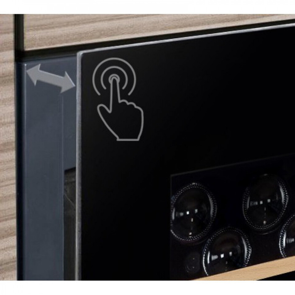 Шкаф оснащен сенсорной панелью управления, с помощью которой пользователь выбирает необходимый температурный режим работы аппарата. В модель встроена функция звукового оповещения об открытой двери, для включения которой необходимо прикоснуться к кнопке питания, а отключается она в случае, когда дверь открыта более 60 секунд.
