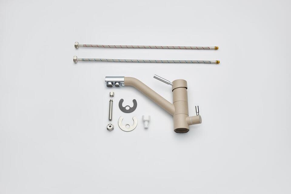 Кухонный смеситель с возможностью подключения фильтра для очистки воды. Фильтрованная вода подается отдельной ручкой через отдельную трубку и не смешивается с водопроводной водой. Однорычажное управление поможет легко регулировать температуру и напор подачи воды. Соответствует стандартам DIN DVGW.
