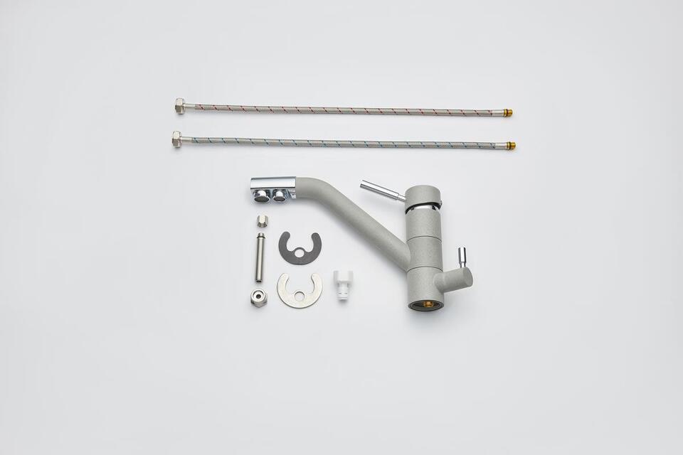 Кухонный смеситель с возможностью подключения фильтра для очистки воды. Фильтрованная вода подается отдельной ручкой через отдельную трубку и не смешивается с водопроводной водой. Однорычажное управление поможет легко регулировать температуру и напор подачи воды. Соответствует стандартам DIN DVGW.