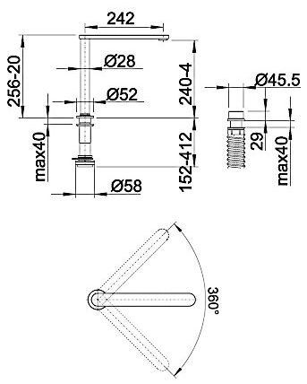 Высота излива, см 24