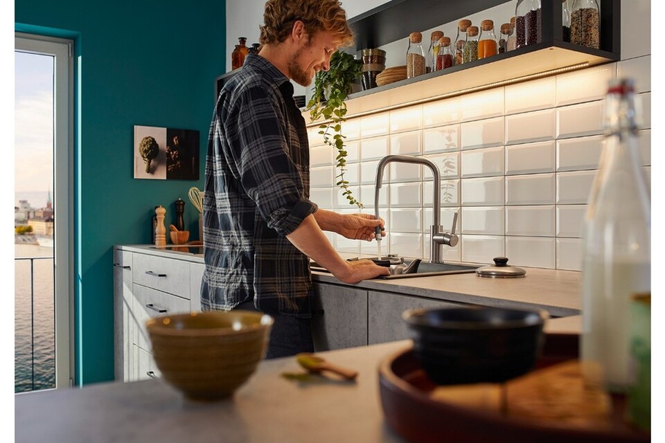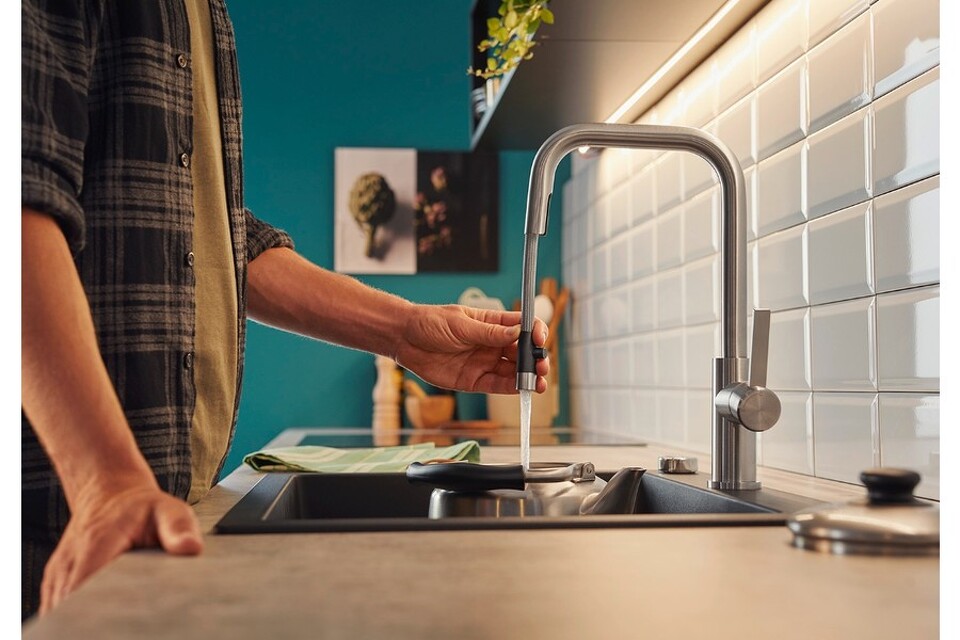 Смеситель Бланко Jandora-S удобен для наполнения кастрюль и ваз благодаря высокому изливу с выдвижной лейкой. Рычаг управления с вертикальным нулевым положением позволяет устанавливать модель близко к стене. Базовая установка настроена на холодный пуск, что помогает экономить горячую воду.