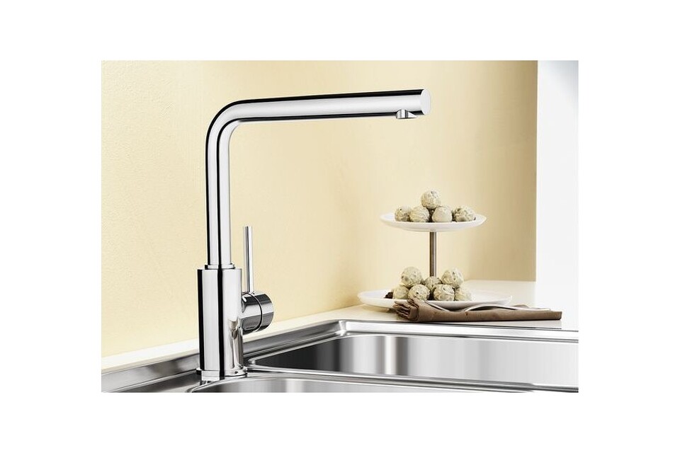 Смеситель Blanco Mila из нержавеющей стали с хромовым покрытием имеет практичный дизайн и легкую регулировку напора. Классическая L-образная форма излива и приятный блеск смотрятся стильно, наиболее выигрышно модель выглядит с металлическими мойками, но также сочетается с каменными и керамическими.
