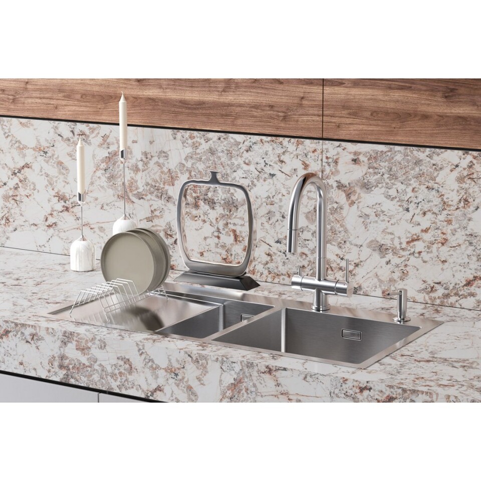 • Первый смеситель OMOIKIRI в категории 3 в 1: функция подачи холодной/горячей воды, возможность подключения фильтра для очистки и наличие вытяжного шланга;