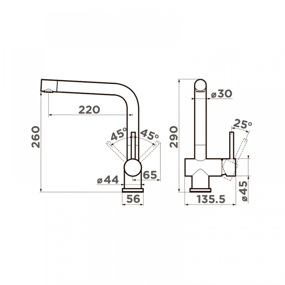 Высота излива, см 26