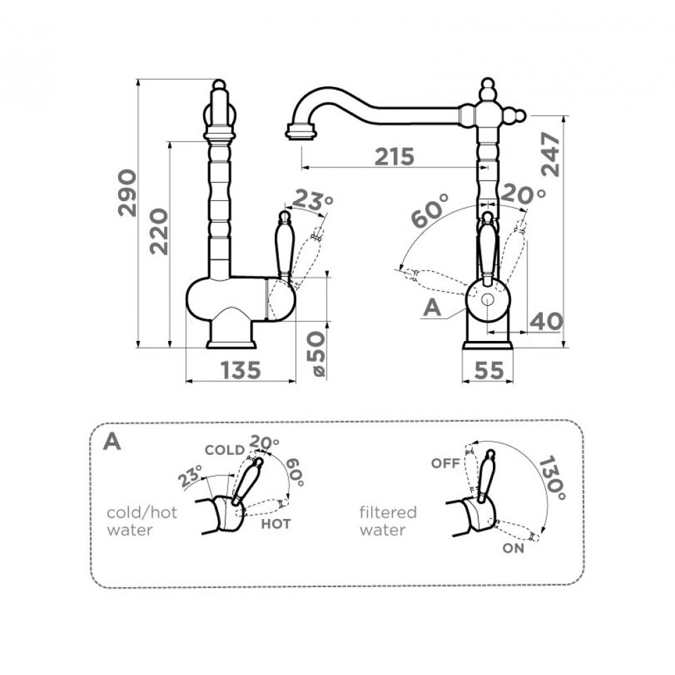 • Технология PURE LIFE®: подключение фильтра для очистки воды. Фильтрованная вода подается по отдельной трубке и не смешивается с водопроводной водой;