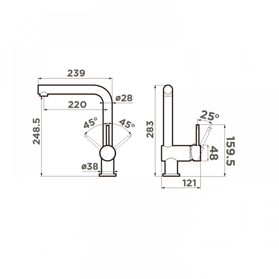 • Практичный однорычажный смеситель выполнен в современном стиле и снабжен высоким поворотным изливом;