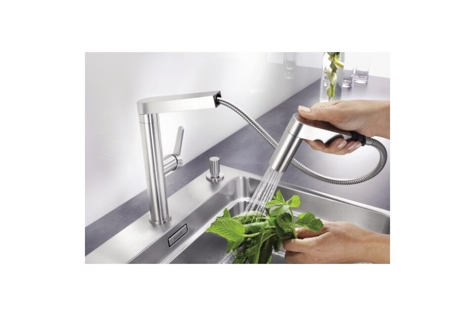 Цвет нержавеющей стали достаточно универсален, впрочем, лучше всего данная модель подходит под интерьеры в стиле hi — tech или минимализм. За свой привлекательный внешний вид этот cмеситель Blanco PANERA-S получил награду в сфере промышленного дизайна Design Award. В его комплект входит стабилизирующая пластина для увеличения устойчивости. А обратный клапан отвечает стандартам EN 1717, которые не позволяют воде течь в обратном направлении.