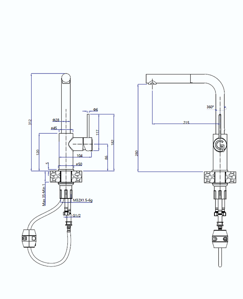 Высота излива, см 28