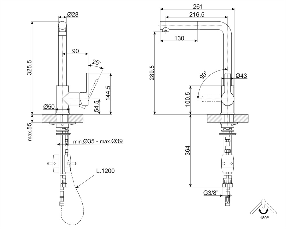 Высота излива, см 28.9