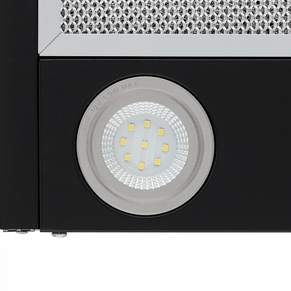 Наклонная вытяжка Domenika, находка для любителей различных современных фишек в кухонном интерьере. Передняя панель вытяжки выполнена из матового стекла, на котором можно оставлять записи, любимые рецепты, красивые рисунки меловым маркером. Модель обладает мощным мотором и производительностью 1000 куб.м., что позволяет очищать воздух на кухне площадью до 20 кв.м. LED-лампы не только радуют глаз, но и экономят электроэнергию,в отличие от других ламп освещения.