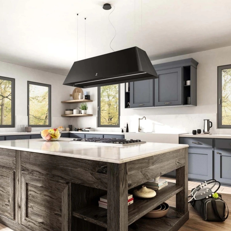 Дизайн: Вытяжка Elica IKONA MAXXI PURE BL MAT/F/120 выполнена в черном матовом цвете. Модель может быть установлена как подвесное устройство, дополнена декоративным коробом или прикреплена к стене (короб и крепеж приобретаются дополнительно), что позволяет вписать ее в любой интерьер.