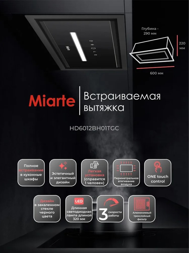 Встраиваемая вытяжка от бренда Miarte НО6012ННО2РСС 60см - это превосходный выбор для тех, кто ценит качество и стиль.