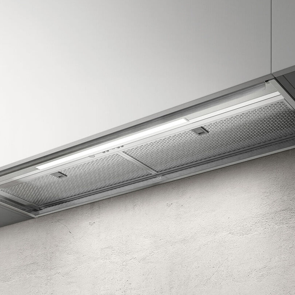 Вытяжка Elica BOXIN ADVANCE IX/A/90 — умелый и надежный помощник для вашего дома. Монтируется в подвесной шкаф, так что прибор подходит для любого дизайна кухни. Вы будете видеть только небольшой фрагмент модели серебристого цвета. Устройство изготовлено в Италии. На одной стороне встроен козырек — он убережет поверхность столешниц и варочную панель от падающих капель. Также благодаря этой детали от пара, идущего снизу, не пострадают кухонные шкафы. При желании можно поставить модель и на стену при помощи специального крепежа в комплекте. Уровень шума от изделия относительно невысокий, от 50 до 64 дБ.