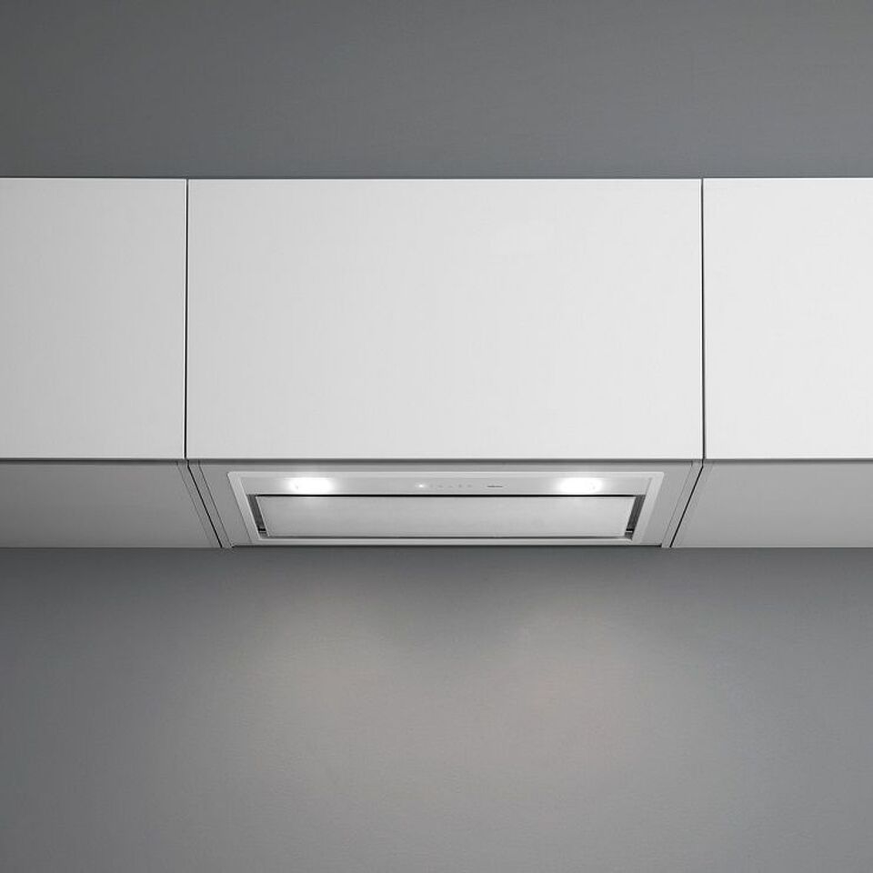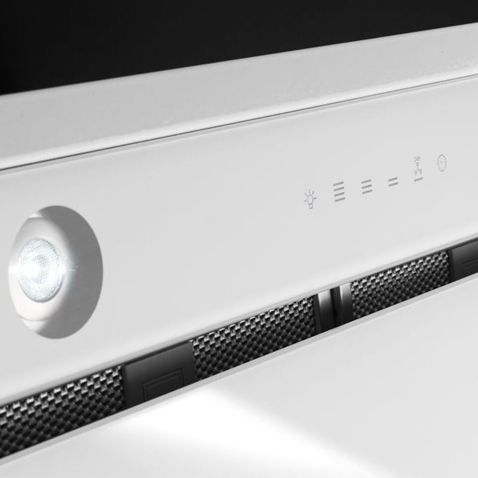Дизайн. Вытяжка Falmec Design GRUPPO INCASSO MURANO 50 inox vetro bianco (800) производится из нержавеющей стали марки AISI 304. Видимая часть прибора выполнена из белого муранского стекла, прочного и привлекательного на вид. На панели расположены элементы сенсорного управления.