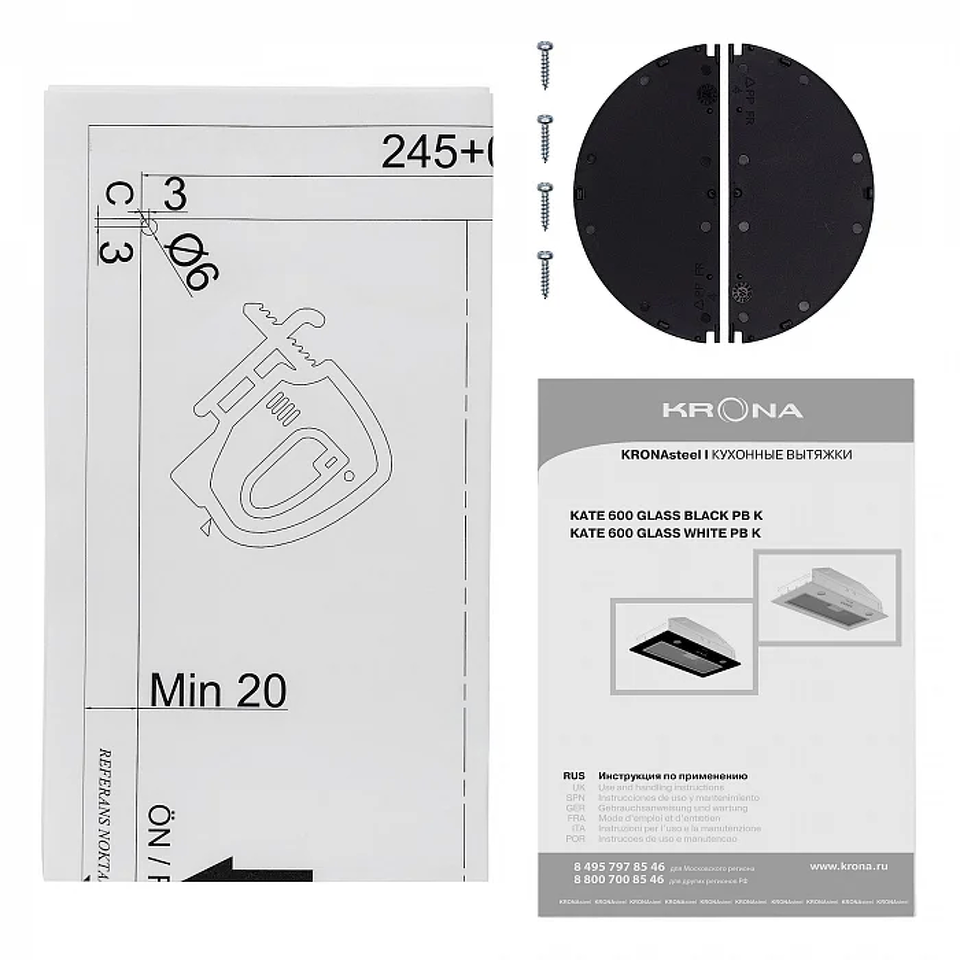 Полновстраиваемая вытяжка KRONA KATE 600 GLASS BLACK PB K