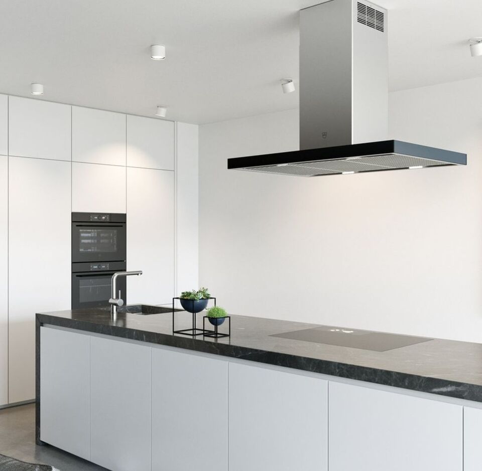 Элегантный фасад с отделкой из зеркального стекла подчеркивает изящество эстетики Excellence Line V-ZUG. Утонченный силуэт вытяжки идеально сочетается с различными варочными поверхностями и является интересным акцентом открытого кухонного пространства.