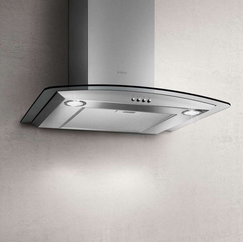 Дизайн. Настенная вытяжка ELICA CIRCUS IX/A/90 шириной 90 см выполнена в цвете «нержавеющая сталь». Купол из металла в сочетании со стеклом крепится к стене и имеет минималистичный дизайн, что делает модель универсальной для встраивания в современный кухонный интерьер. Фронт дополнен удобной панелью управления с кнопочными переключателями скоростей и освещения.
