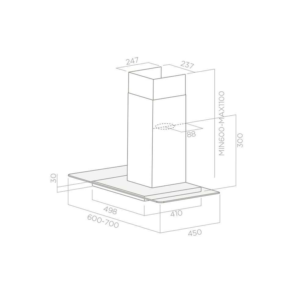 Преимущества. Вытяжной вентилятор обеспечивает производительность до 700 куб. м в час, что гарантирует быстрое очищение воздуха в кухонном помещении среднего размера. Вытяжка должна располагаться на расстоянии не ниже чем 50 см от электрической варочной панели и не ниже чем 65 — от газовой. Две яркие галогенные лампы станут полноценным источником освещения рабочей поверхности.