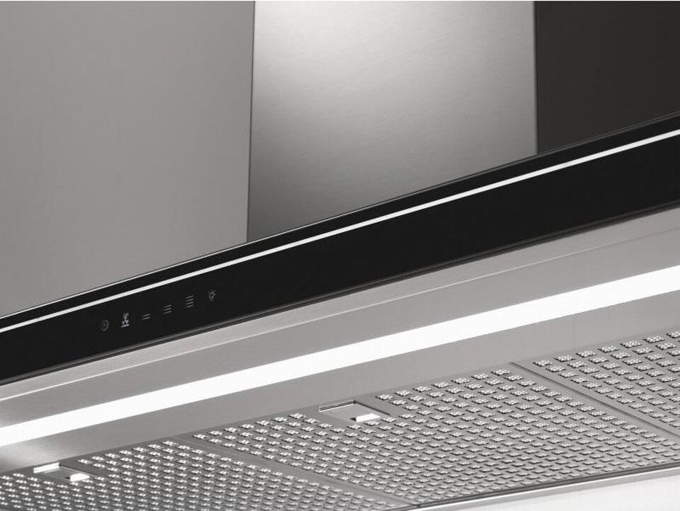 Дизайн. Вытяжка Falmec Silence LUMINA NRS 120 Vetro Nero (800) произведена из нержавеющей стали и декорирована рамкой из закаленного черного стекла. Пространственное белое неоновое освещение выгодно подчеркивает строгую простоту модели и придает кухне праздничный вид.