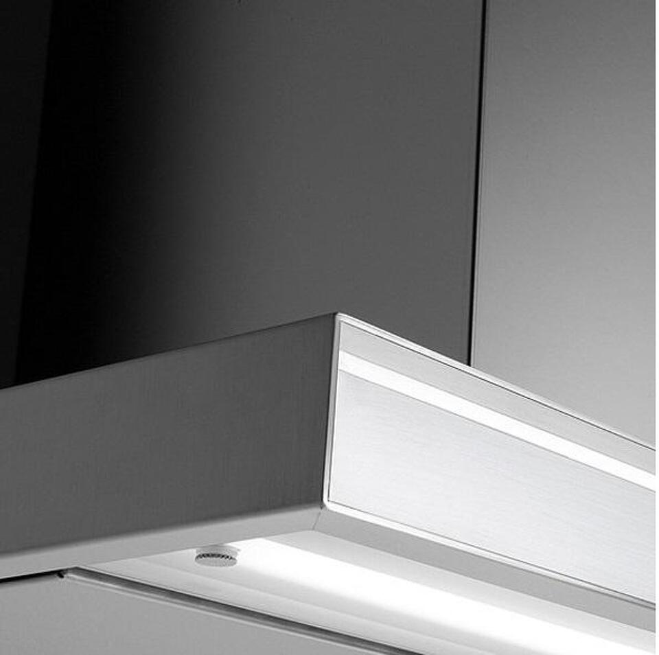Дизайн. Вытяжка Falmec Silence LUMINA NRS isola 90 Vetro Bianco (800) изготовлена из нержавеющей стали и декорирована рамкой из белого закаленного стекла. Неоновое пространственное освещение выигрышно подчеркивает строгие геометрические линии модели и служит заменой светодиодам.