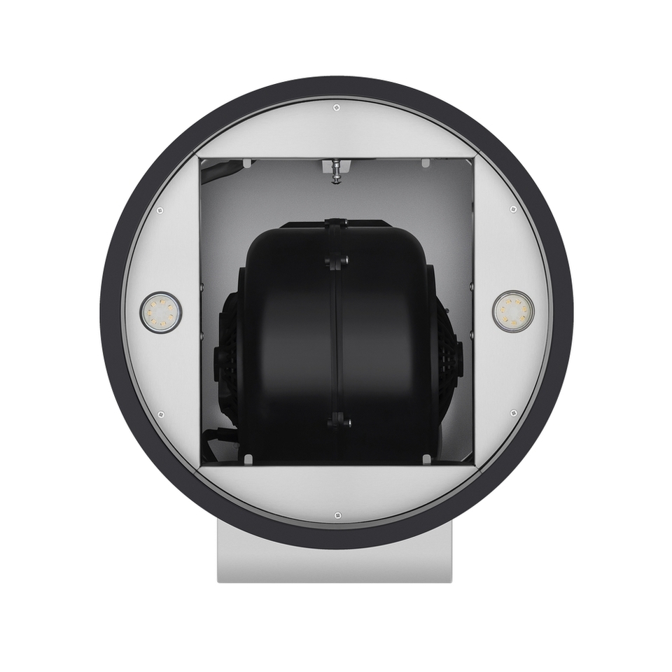 Корпус цилиндрической  формы, выполненный из матированной нержавеющей стали, монтируется на стене над варочной поверхностью. Торец рабочей поверхности имеет черную акцентную окантовку. Специальный многослойный жироулавливающий фильтр выполнен из алюминия.