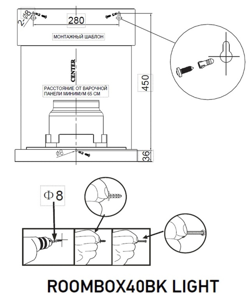 Тип установки вытяжки Настенный