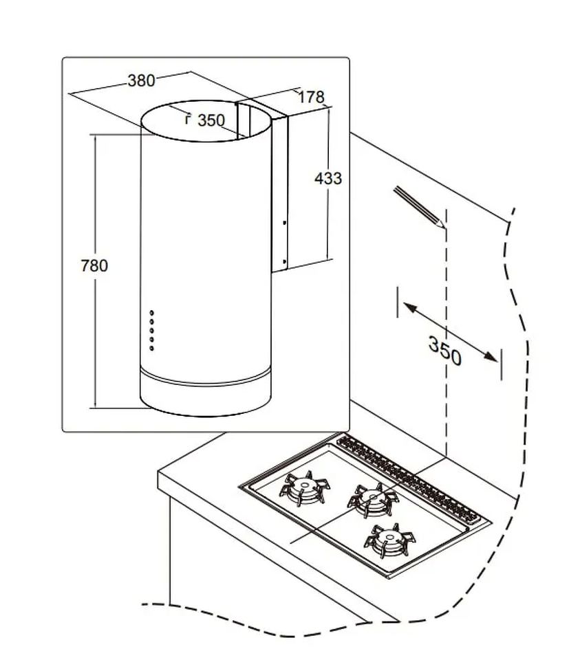 Тип установки вытяжки Настенный