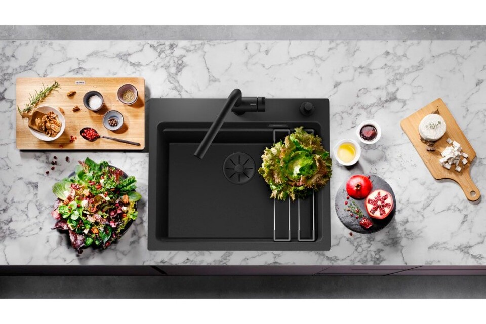 Фото Перелив для мойки Blanсo Отводная арматура InFino® с переливом черный матовый (одна чаша)