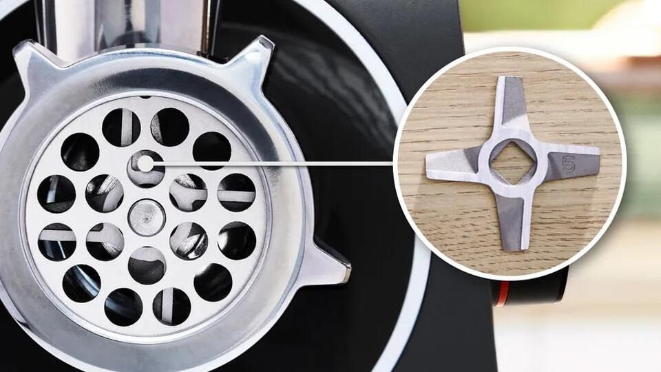 Рабочие характеристики ориентированы на повседневные потребности семьи: мощность двигателя 500 Вт в штатном режиме обеспечивает производительность до 3.5 кг/мин при нормальной загрузке, а при блокировке вала доступна максимальная кратковременная мощность 2100 Вт, что даёт запас для решения сложных задач. Две скорости адаптируют режим работы под вид продукта — деликатные ингредиенты обрабатываются на щадящем режиме, плотные куски и замороженные части — на ускоренном. Система реверса помогает быстро устранить засоры и вернуть диски в рабочее положение без разборки. Нож с двусторонней заточкой поддерживает ровный поток фарша и долгий срок службы заточки, а конструктивные решения обеспечивают простоту ухода и быструю очистку после применения.