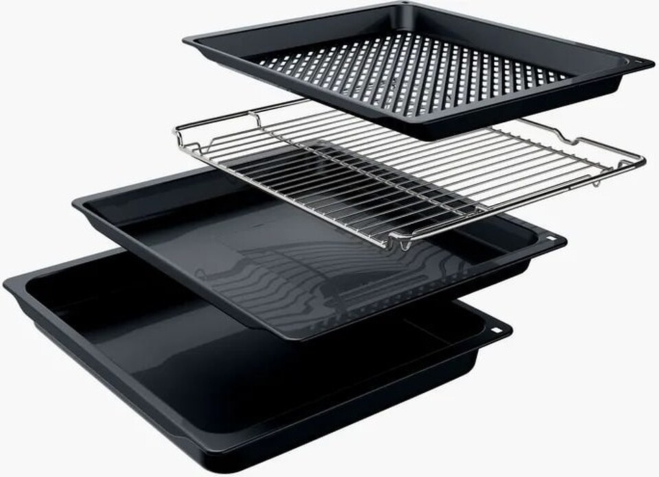 В приборе предусмотрено 10 автоматических программ, а также функция CookControl, которая помогает вам выбрать оптимальные настройки для каждого блюда. Внутреннее галогенное освещение обеспечивает отличную видимость при приготовлении пищи. Очистка прибора облегчена благодаря системе EcoClean и панелям EcoClean на верхней, задней и боковых стенках. Телескопические направляющие на одном уровне обеспечивают удобство при использовании прибора. В комплекте с прибором поставляется комбинированная решетка, универсальный противень и противень Air Fry.