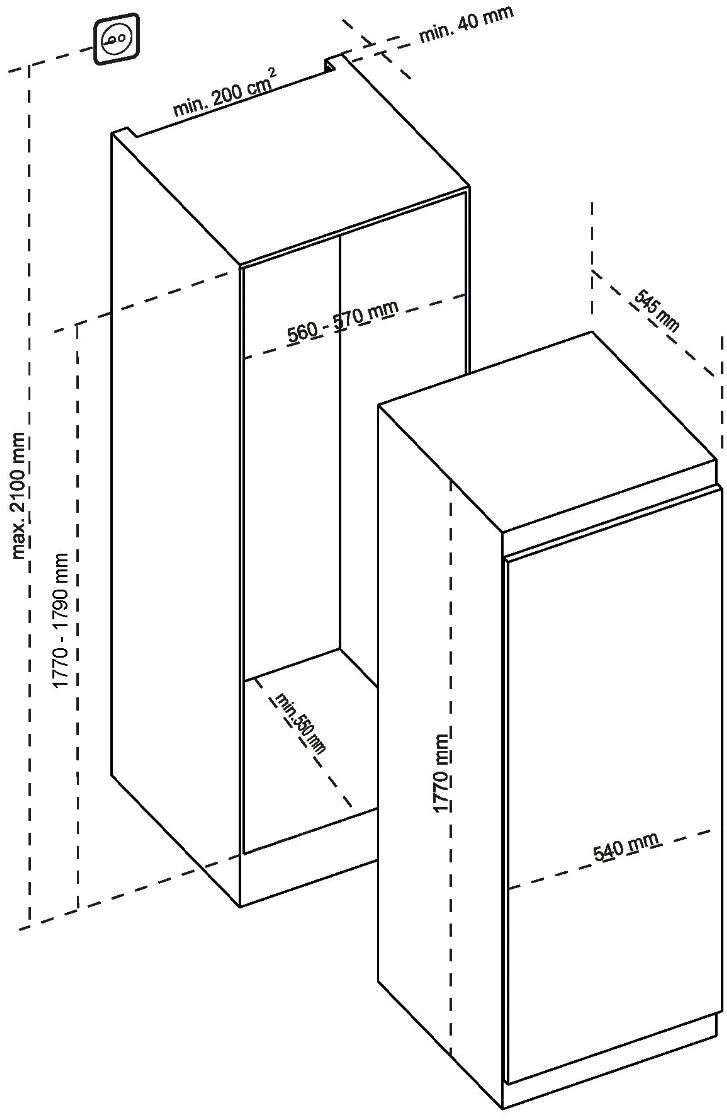 Высота ниши для установки, см 177