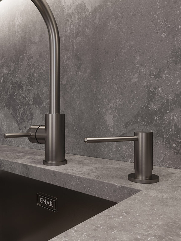 Функциональный и простой в использовании аксессуар для Вашей кухни. Подходит для использования жидкого мыла или моющего средства. Дозатор EMAR легко устанавливается на кухонную мойку или в столешницу. Установочный вырез, мм: d=30.