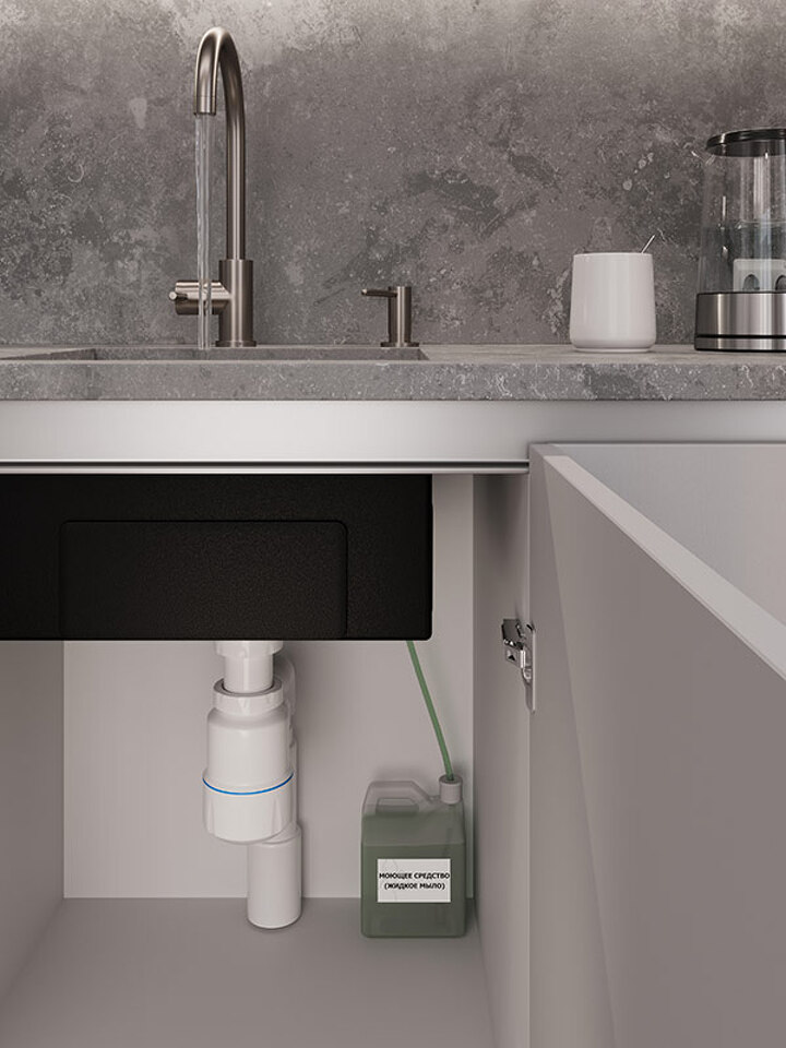 Дозатор EMAR ЕД-405, это экономия рабочего пространства на кухне, экономный расход моющего средства, эстетичный внешний вид и удобство в использовании.