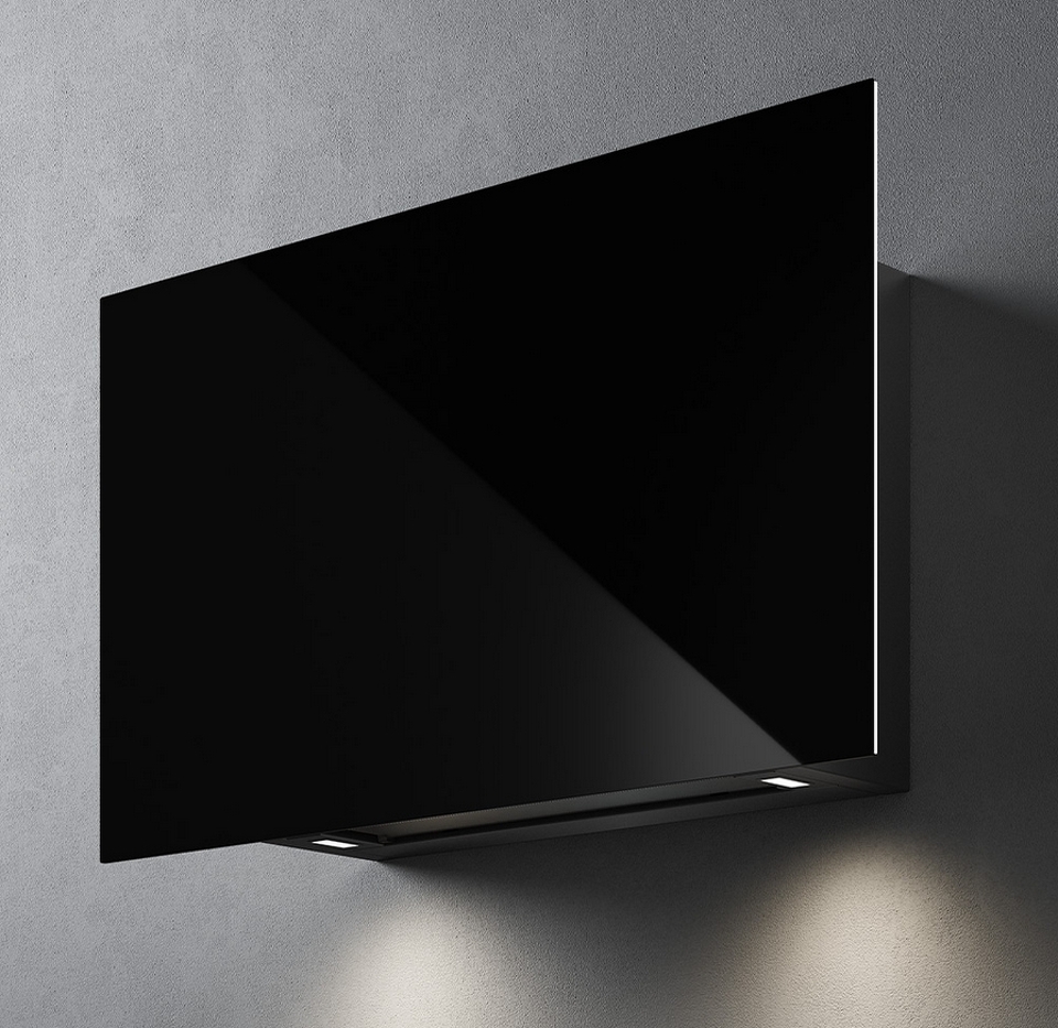 Дизайн: Вытяжка Falmec COVER 85 BLACK выполнена в универсальном черном цвете с фронтальной панелью из стекла.