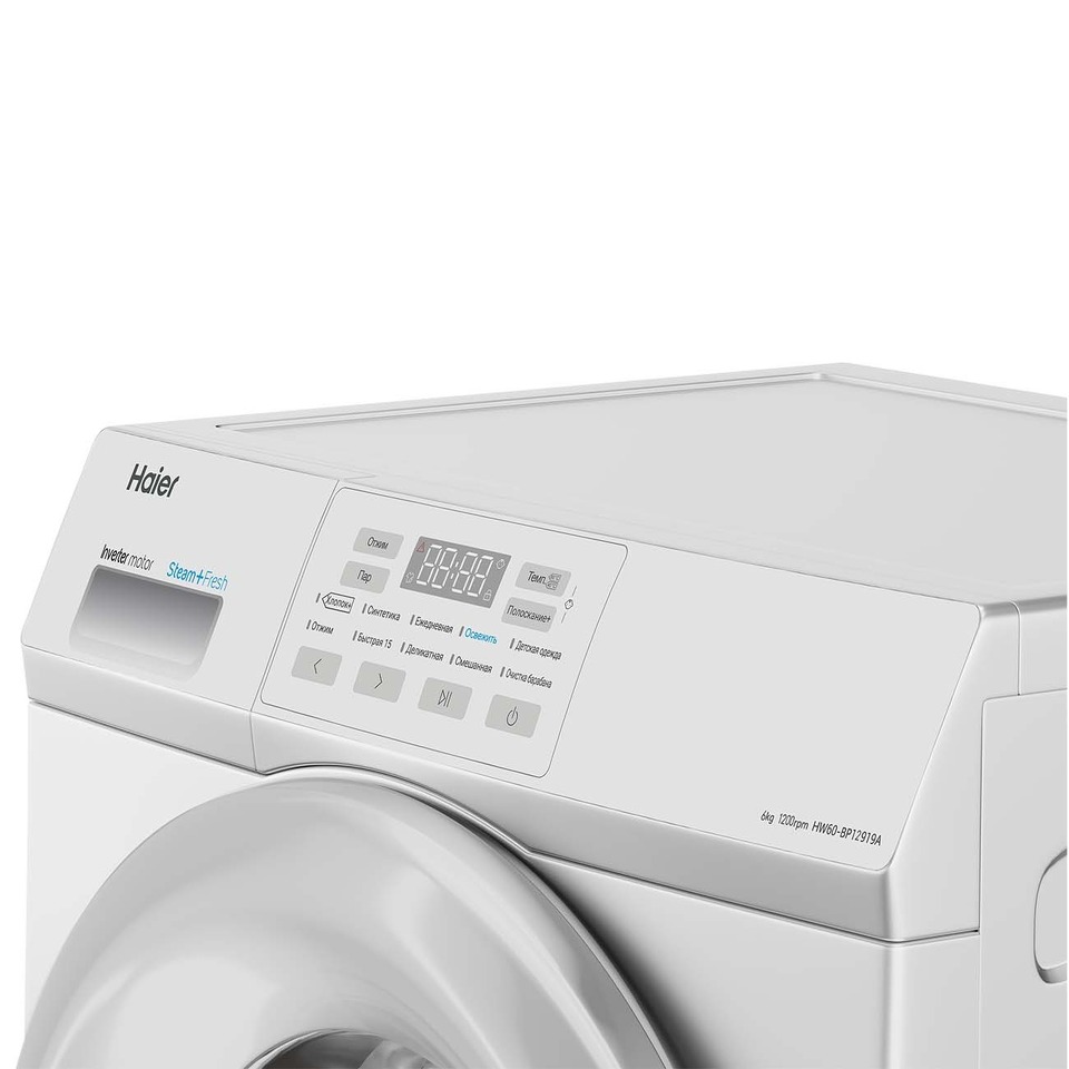 Стиральная машина Haier HW60-BP12919A в белом корпусе оснащена инверторным двигателем. Функция автовзвешивания позволяет точно рассчитать необходимый расход воды и исключить лишнее потребление. Барабан рассчитан на 6 кг белья.