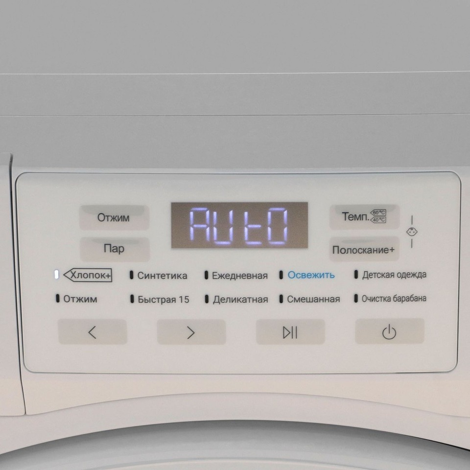 У стиральной машины несколько режимов работы: дополнительное полоскание, деликатная программа, автоматическая очистка барабана и другие. Программа стирки с паром Steam+Fresh освежает белье. Также можно воспользоваться ускоренной стиркой (15 минут). Скорость отжима регулируется, максимум составляет 1200 об/мин.
