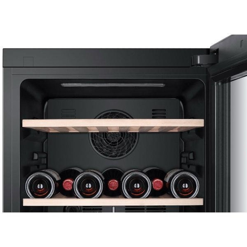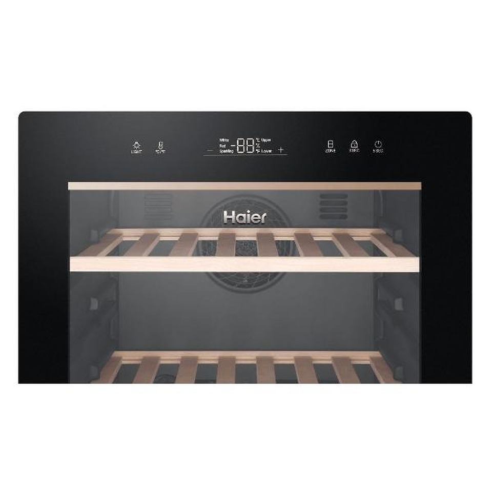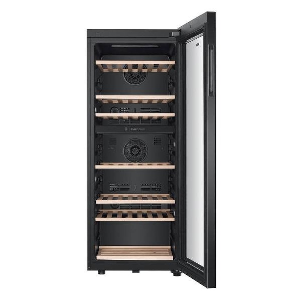Haier FWC77GDAЕ1 — это высокотехнологичный винный шкаф для хранения коллекции любимых вин с возможностью дистанционного управления из мобильного приложения evo и вмещающий до 77 классических бутылок типа «Бордо». Дистанционно можно настраивать температуру в двух отдельных зонах, выбирать тип вина (Белое, Красное или Игристое) и управлять подсветкой шкафа. Эффективное зонирование обеспечивается надёжным компрессором и электронной системой управления. Диапазон температур — от +5 до + 20 градусов. При необходимости можно использовать его и как однотемпературный винный шкаф. Деревянные полки не покрыты лаком — в шкафу нет никаких посторонних запахов, вредных для вина. К тому же, на дереве не образуется конденсат — нет вредной для пробок повышенной влажности, не портятся этикетки на бутылках. А ещё дерево гасит вибрацию, что вместе с реализованной здесь специальной технологией защиты от вибрации обеспечивает хранение вина по всем правилам — в покое. Защищена винная коллекция и от солнечных лучей — в двери стеклопакет, нейтрализующий ультрафиолетовое излучение. Всё это, вместе с низким энергопотреблением (класс А) и тихой работой (шум — до 37 дБ), делает использование этого винного шкафа максимально удобным.