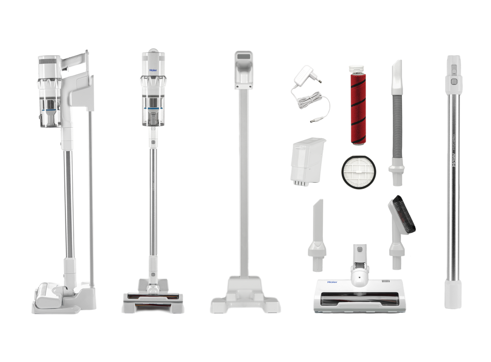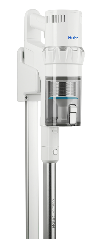 Вертикальный пылесос Haier HVC250 мощностью 250 Вт обладает циклонической системой всасывания с пятью ступенями фильтрации, все фильтры легко снимать для очистки. Двигатель и контейнер для пыли емкостью 500 мл находятся в верхней части устройства. Основная трубка пылесоса сделана из алюминия, кроме нее есть три насадки из поликарбоната и ABS-пластика: гибкая (для труднодоступных мест), щелевая и мягкая. За счет насадок пылесос легко трансформировать в ручной.