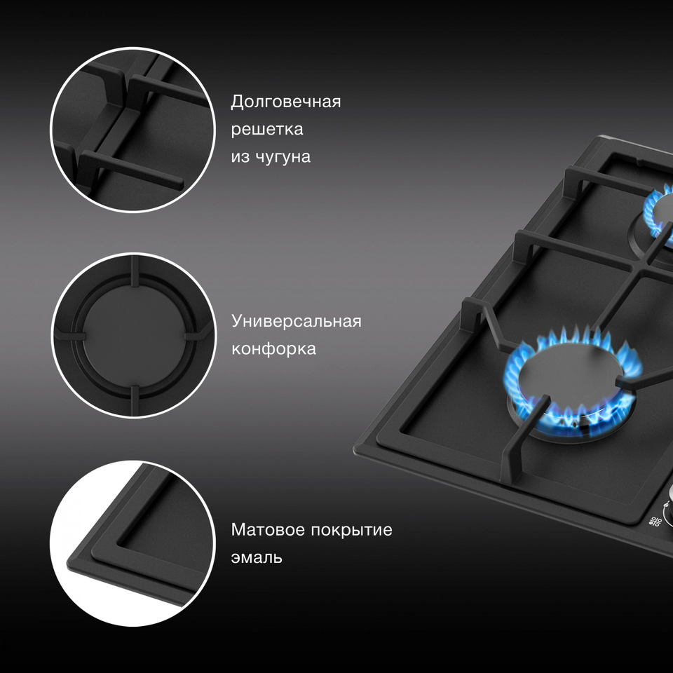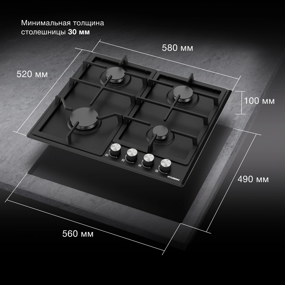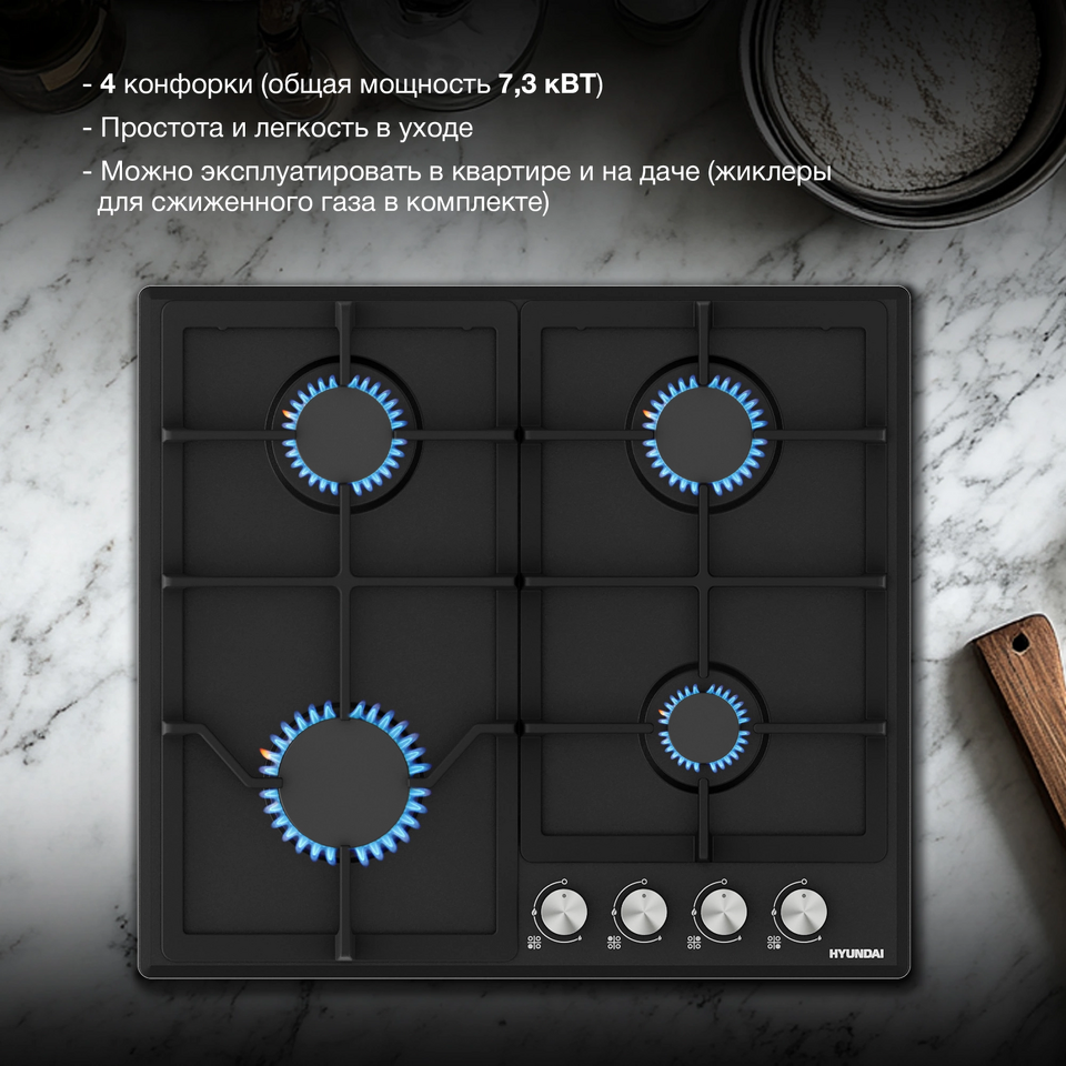 Фото Газовая варочная панель Hyundai HHG 6432 BK