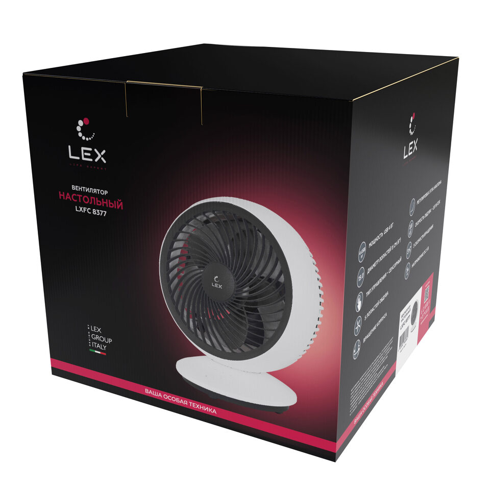 Lex LXFC 8377, 6" настольный вентилятор, USB, белый