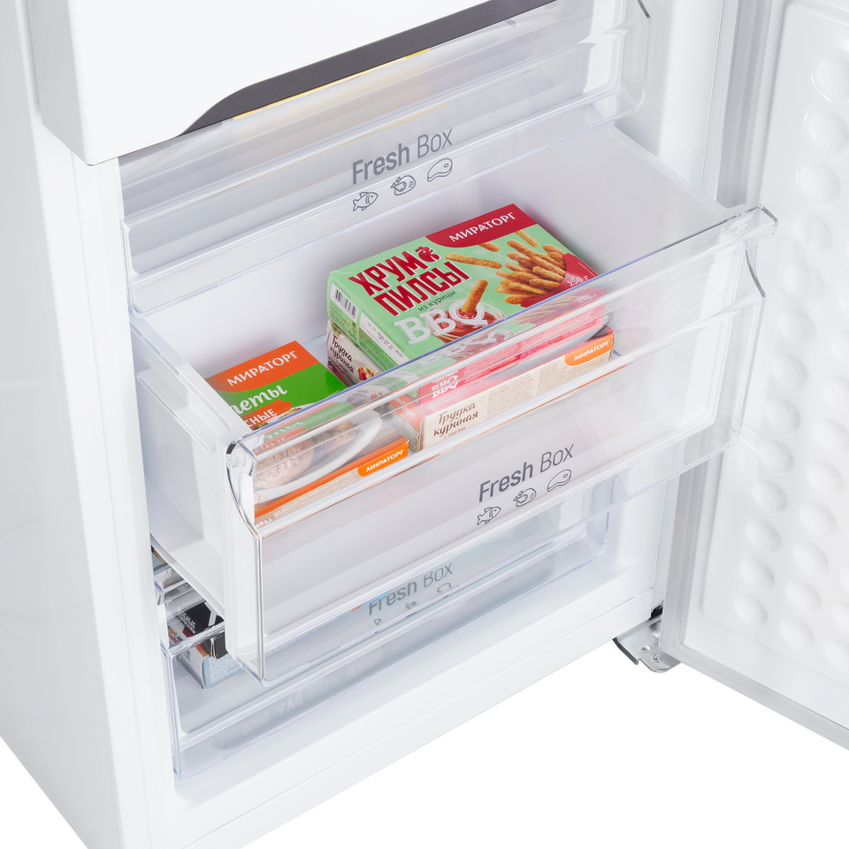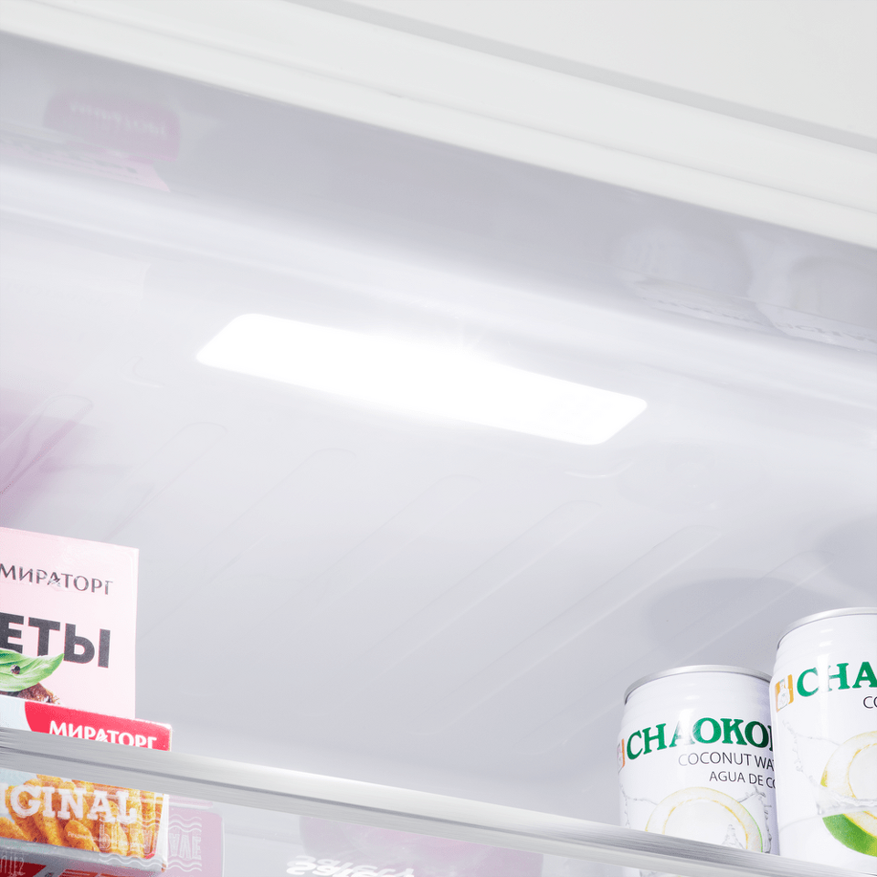 Яркая равномерная LED подсветка обеспечивает отличный обзор продуктов внутри холодильника.