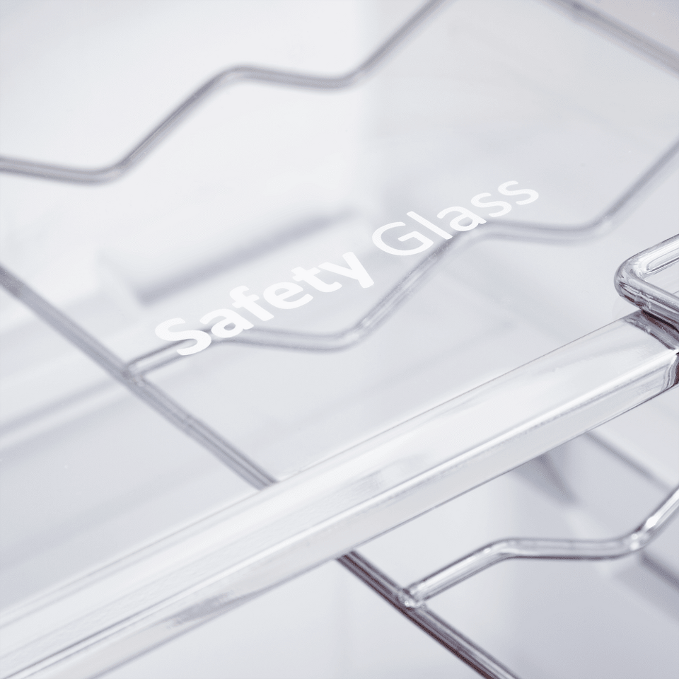 Полки из прозрачного закаленного стекла легко переставляются и не мешают равномерному освещению внутри холодильника.