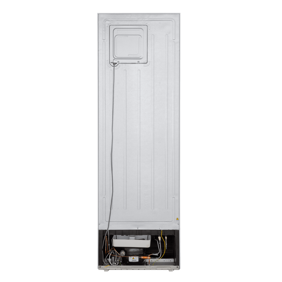 Современный двухкамерный холодильник TOTAL NO FROST шириной 60 см с инверторным компрессором, сенсорной панелью управления. Фасад выполнен из металла.