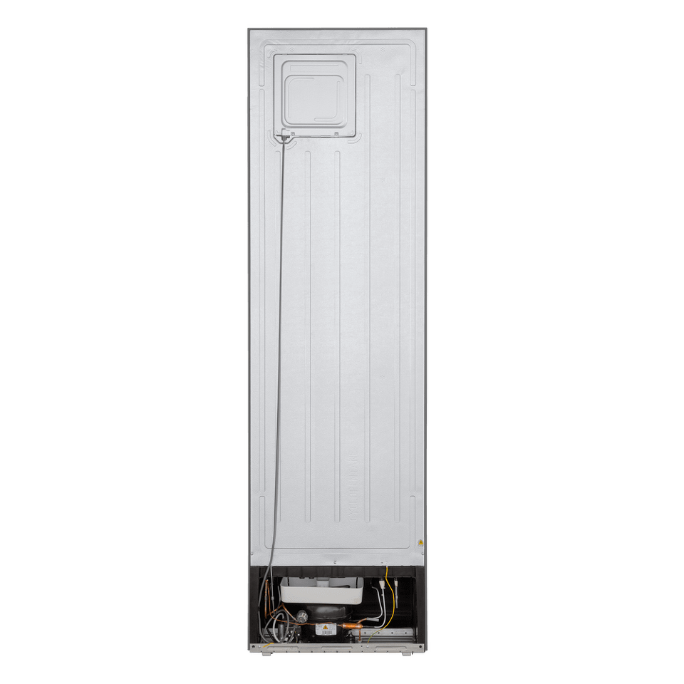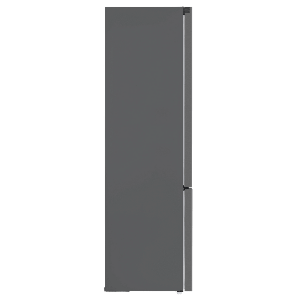 Современный двухкамерный холодильник TOTAL NO FROST шириной 60 см с инверторным компрессором, сенсорной панелью управления. Фасад выполнен из металла.