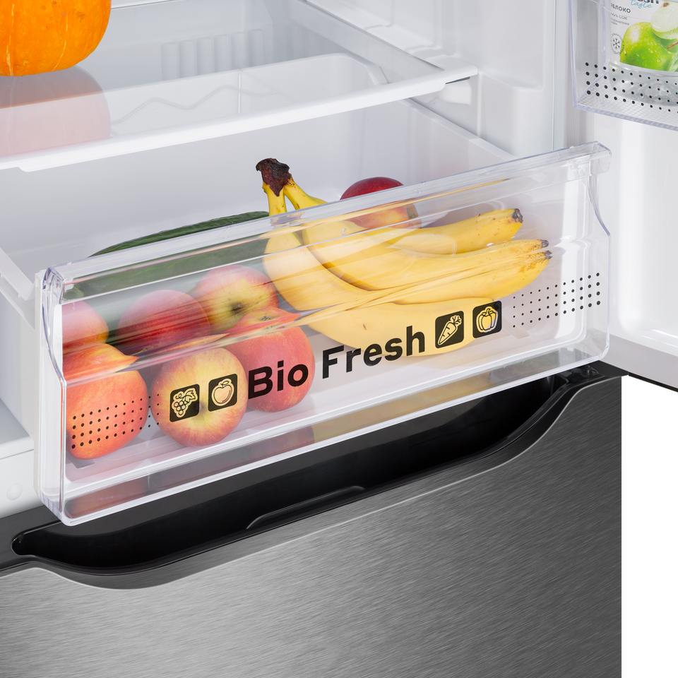 Современная система охлаждения обеих камер NO FROST не даст образоваться инею и льду на стенках холодильника. Благодаря постоянной циркуляции холодного воздуха в холодильном и морозильном отделении создаются оптимальные условия хранения продуктов.