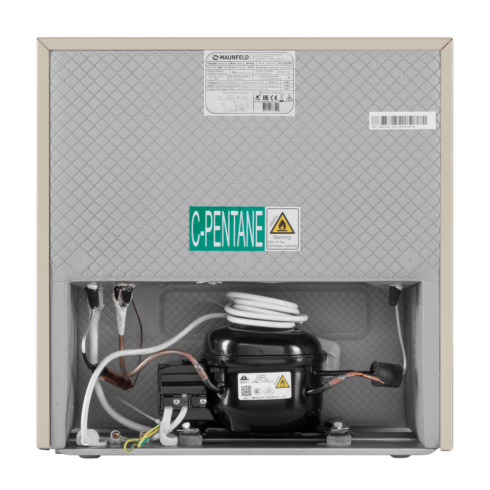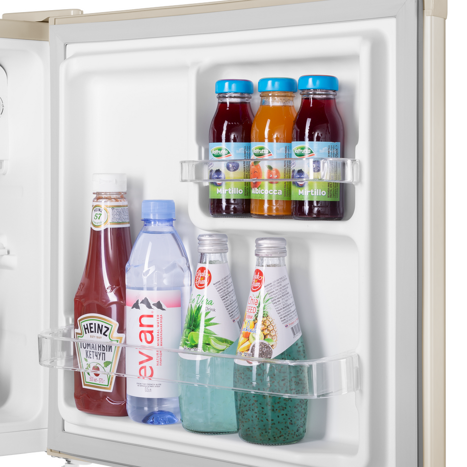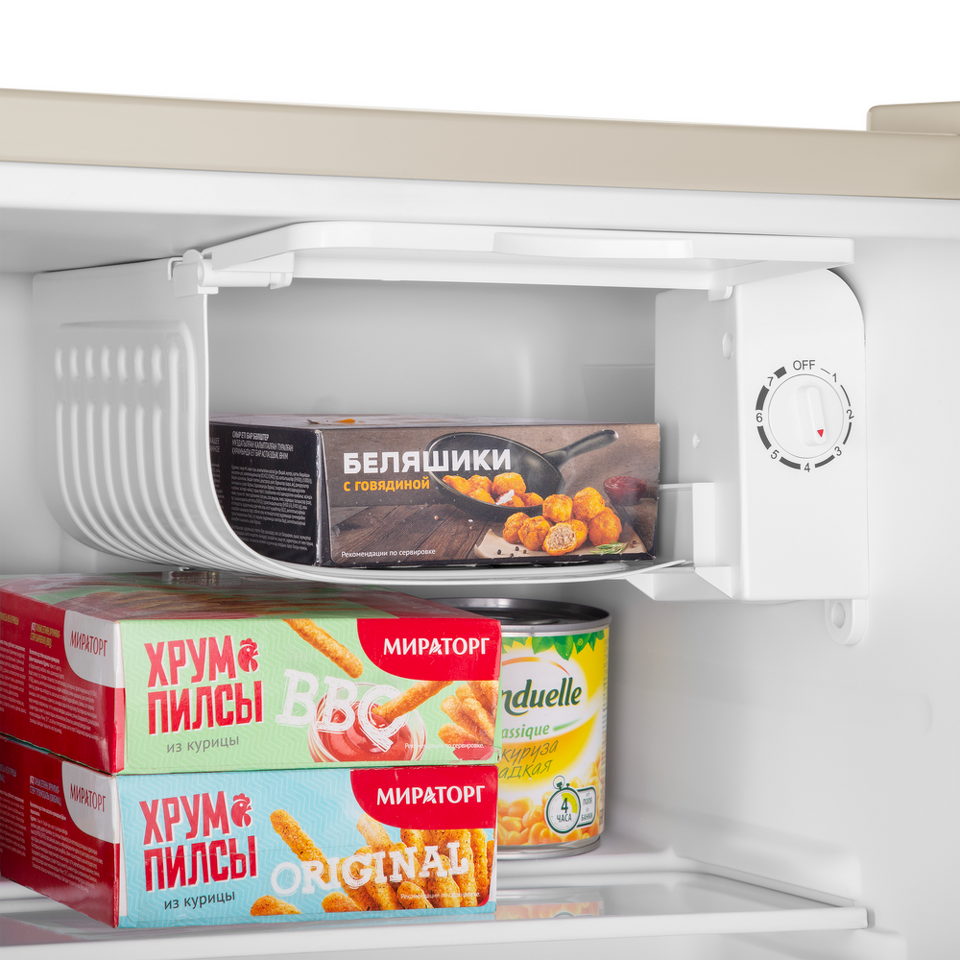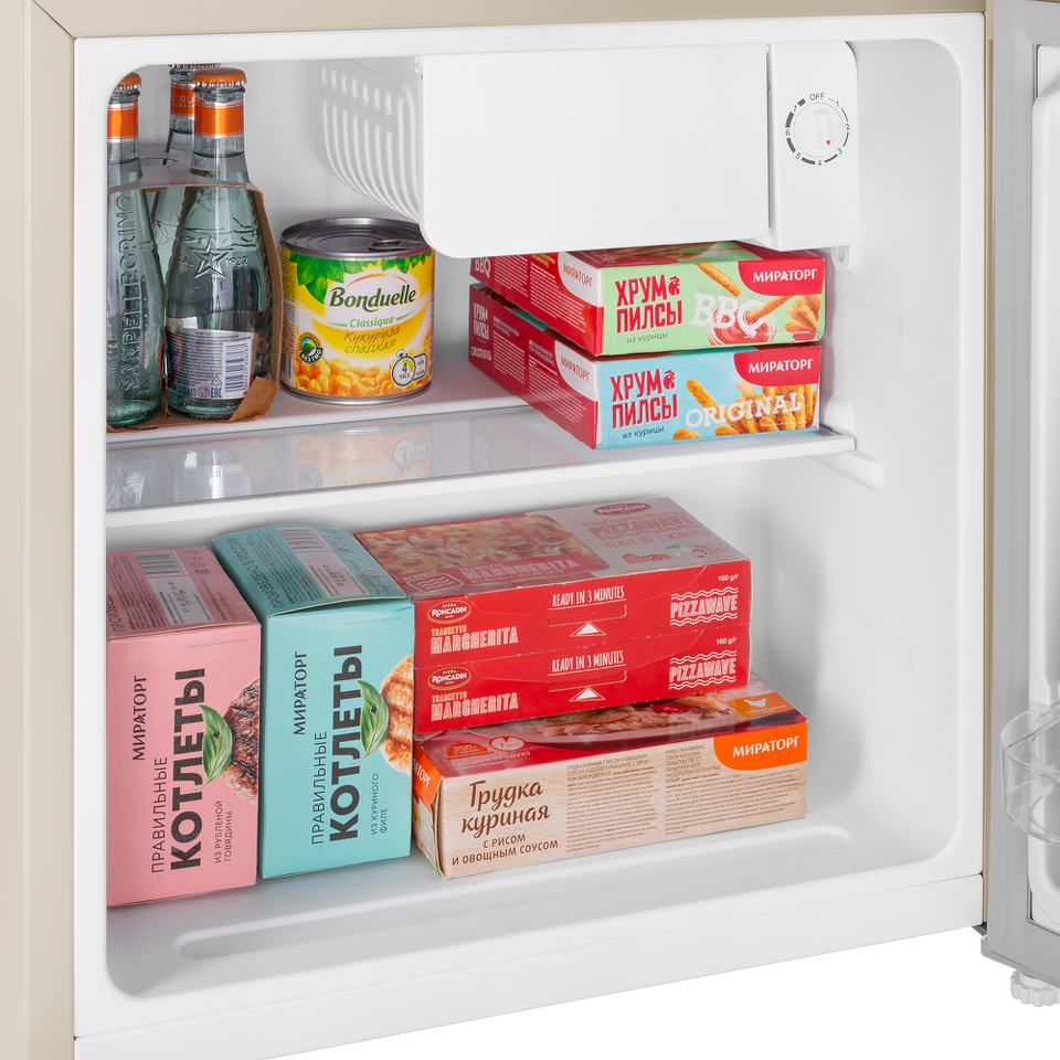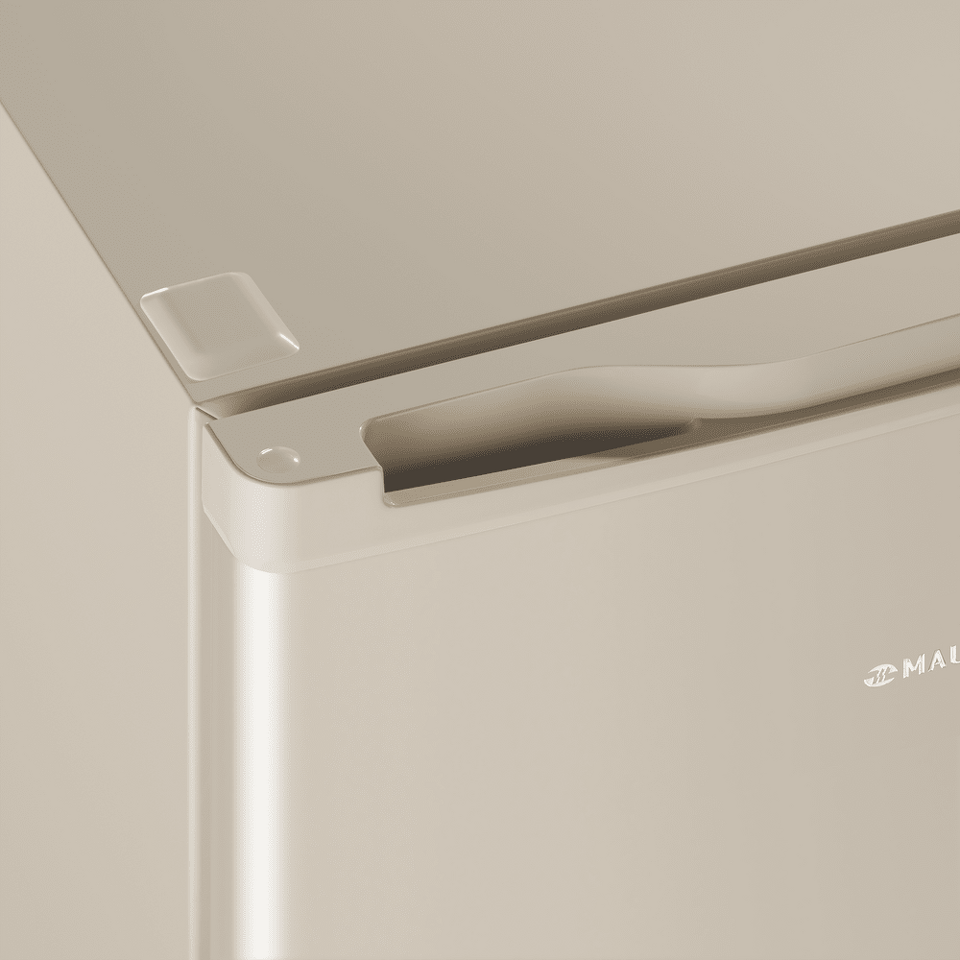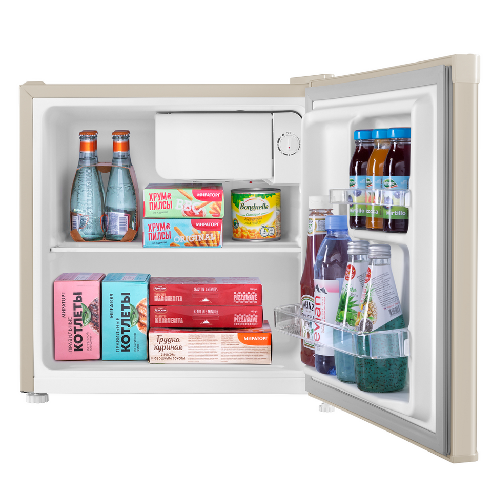 Компактный однокамерный однодверный холодильник высотой всего 50 см с камерой охлаждения, располагающейся в верхнем углу.