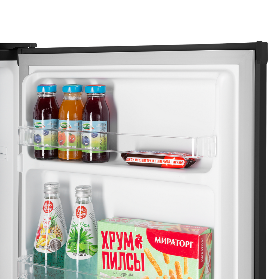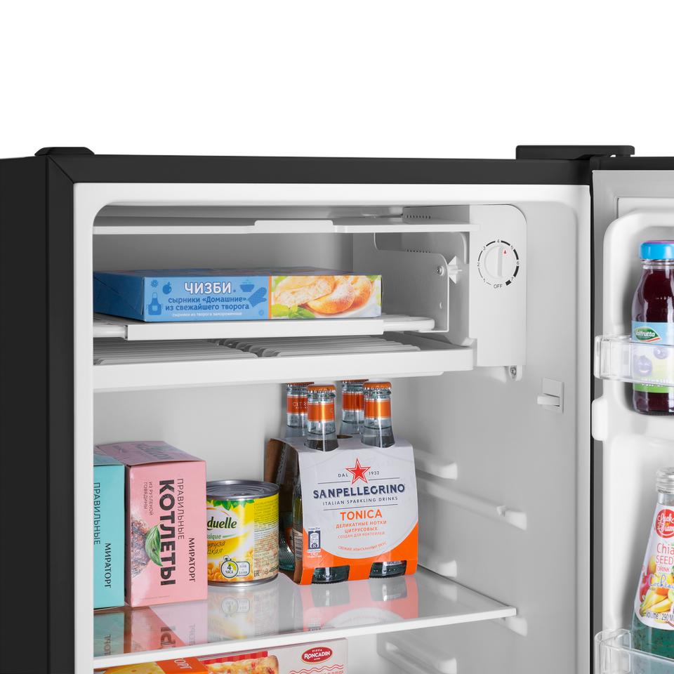 Компактный однокамерный однодверный холодильник высотой 83 см с камерой охлаждения.